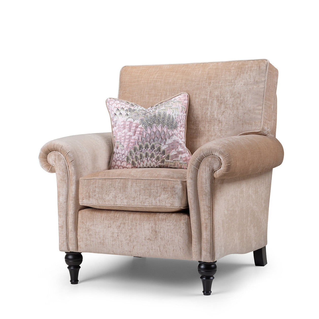 The Belinda Traditional Velvet Armchair brings timeless elegance and opulence to any space with its sumptuous crushed velvet cream upholstery. Designed for both style and relaxation, it features black turned front legs and graceful sabre back legs, exuding sophistication and charm. The foam seat cushion and feather-filled back cushion provide exceptional comfort, while the high back cushions offer enhanced head support for ultimate relaxation. Perfect for living rooms, atriums, or orangeries, this luxurious armchair makes a grand statement, effortlessly elevating any interior with its refined beauty.