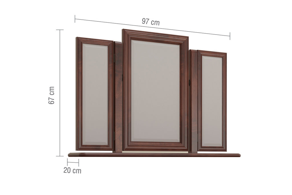 The Antoinette Sleigh French Triple Mirror is the perfect finishing touch to elevate your dressing area. Beautifully framed in rich dark cherrywood tones with a soft lacquer finish, it reflects the timeless elegance of French-inspired design. The three-panel construction includes an adjustable central mirror and two side wings, giving you versatile angles for daily use while adding a touch of sophistication to your space.